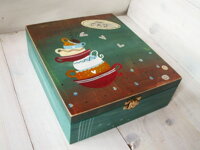 Drevená maľovaná krabička na čaj 9 - priečinková. Veľkosť: cca 20,5cm x 23,5cm x 7,5 cm